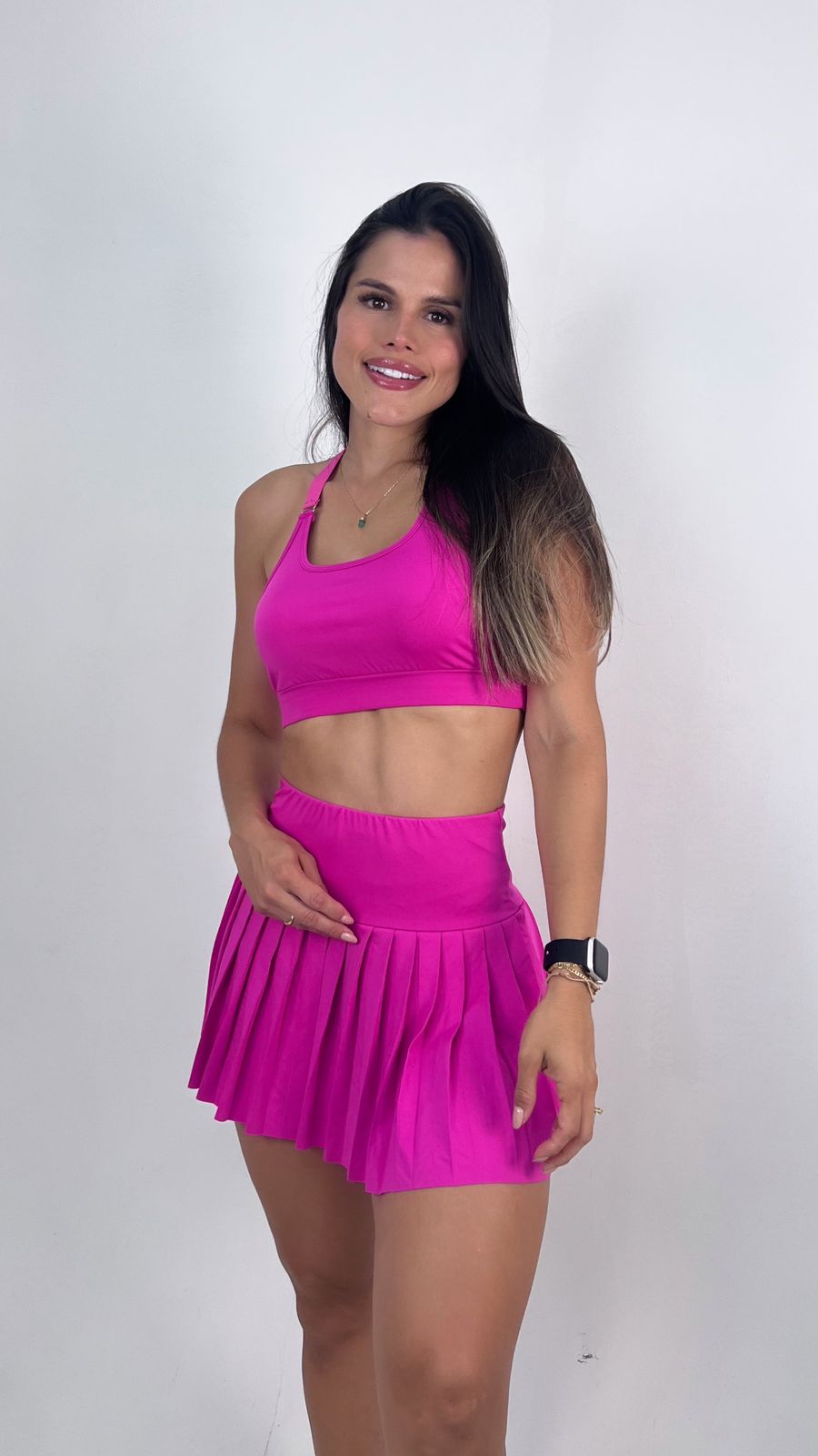 El Set de Falda Venezia combina estilo y comodidad para acompañarte en cada movimiento. Su tela suave y flexible permite libertad total durante la actividad, mientras que el short interno ofrece soporte y seguridad para mayor confianza en cada paso.